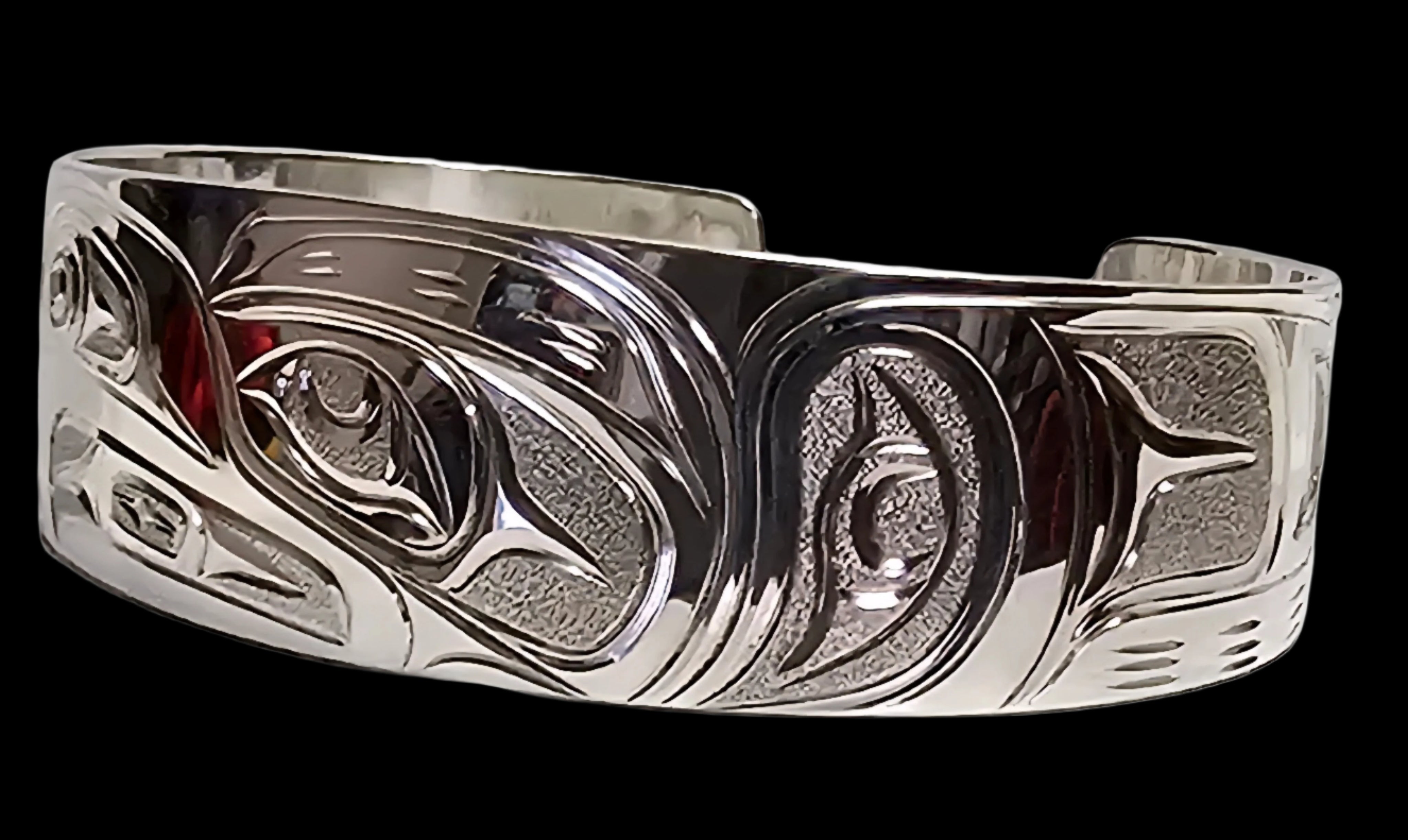 Joe Descoteaux – Ojibway; Born in 1964 in Ontario, Joe moved to British Columbia in the 1980s where he met his wife Cheryl Wadhams. Joe began working in the Northwest Coast style under the guidance of Cheryl and her uncles Don Dawson and Raymond Wadhams. After working in wood for a year, Joe learned jewellery making techniques from Lloyd Wadhams Jr. In 2007, at a potlatch in Alert Bay, Joe was given the name Hilamas, a traditional name from the Dawson family which means 'he fixes things'.