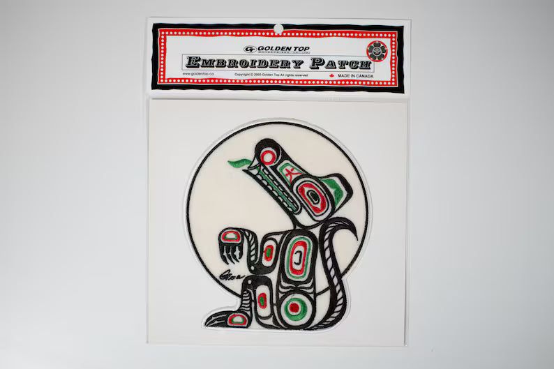 Iron-On 10cm or 18cm Embroidered Patch Indigenous Design 'Wolf' by Gene Suyu
