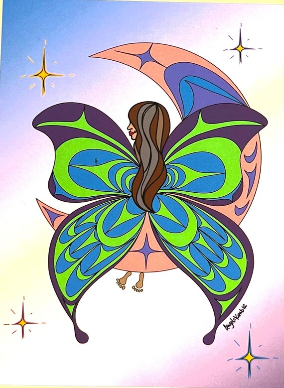 On offer is beautiful polyester 'Fairy Moon' baby blanket from Coast Salish artist Simone Diamond.